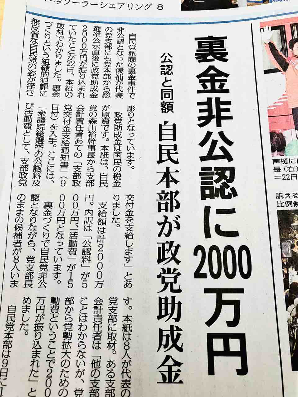 裏金問題で非公認になった議員が代表を務める地方の党支部に、2000万円の政党助成金が振り込まれていたことがわかった。つまりこれは”新たな裏金”と同じ。これは日本共産党の機関紙「赤旗」がスクープした記事だ。