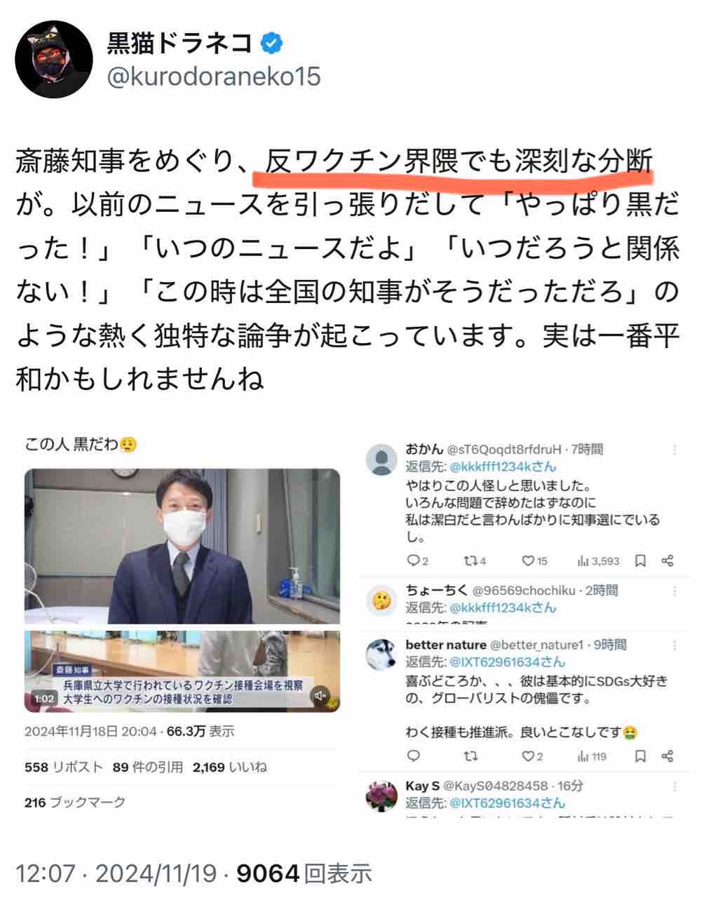 ところが、その斎藤本人の一昨年の投稿が見つかり、反ワク連中の間で炎上中。
