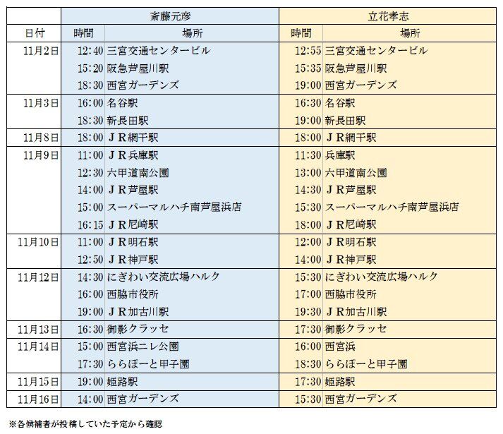 決定的なのは両者が選挙協力してた場合、当選者の当選は取り消され公民権を失う…ということである。選挙協力というのは「AとBが同じ場所で演説を連続開催していても犯罪が成立しうる」ということだ。つまり両者は以下のスケジュールだったので、「完全にアウト」「選挙協力してないは通用しない」ということになる。