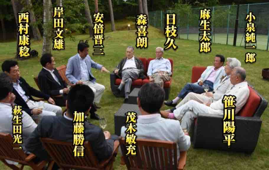 この写真を見てもはっきりわかる通り、グループ総裁の日枝は、自民党それも安倍派、麻生派の連中とこのように親密だった。連中のお抱え放送局と言って良い。だから必死になって文春を叩いているのだ。
