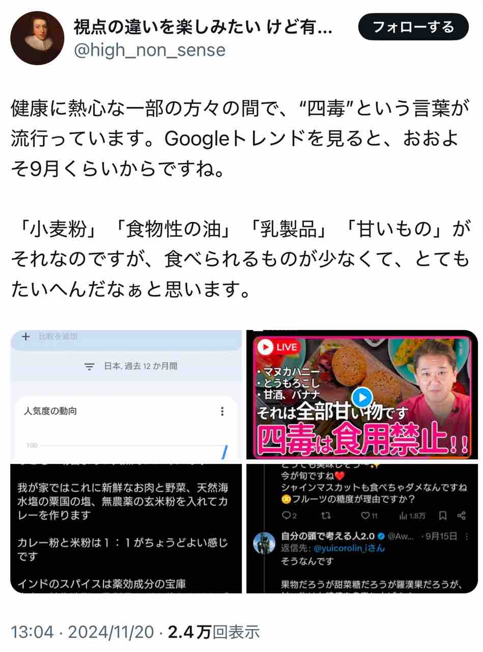 ⬇︎四毒って吉野敏明が流行らせたんだよ。騙されて四毒抜きやって体調崩した者多数。馬鹿馬鹿しくないか❓そうやって騙されるの。