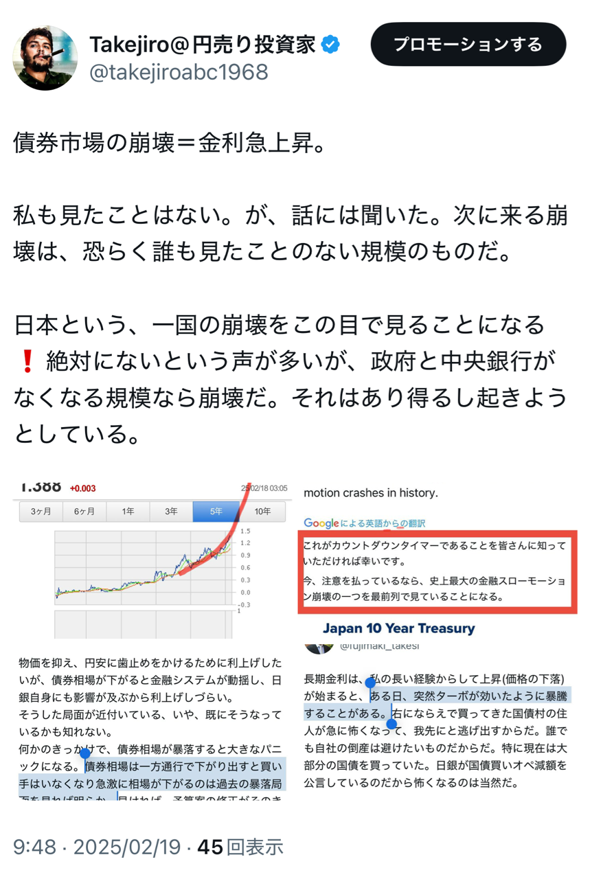 今後、国債暴落を引き起こしかねないイベントは、予算案修正、3月国債入札が不調の場合、4-6月期の日銀の国債買い入れ計画公表など。要するに、ちょっとしたことがきっかけになる可能性。
