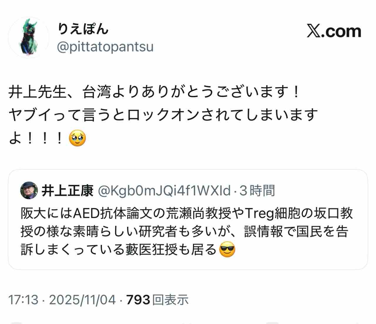 そのりえぽんが海外逃亡したと書いたが、タイ🇹🇭ではなく台湾🇹🇼だとわかった。