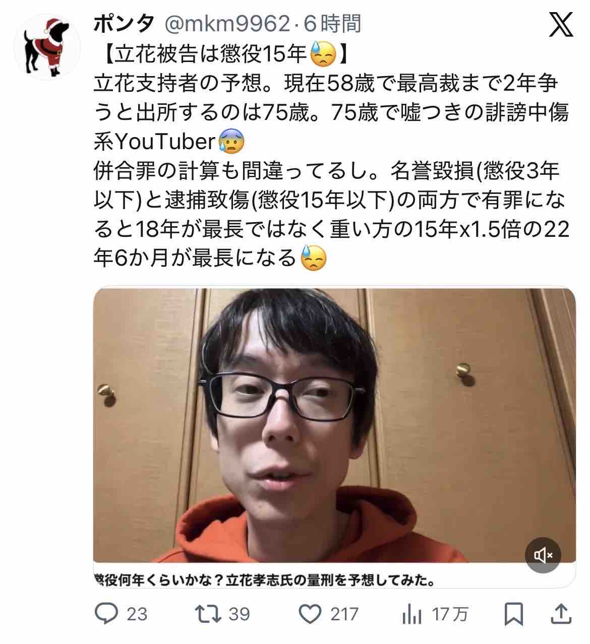 立花孝志は公表されているものだけで、18件も告訴されている。オウムの麻原彰晃の17件よりも多いとは驚きだ。