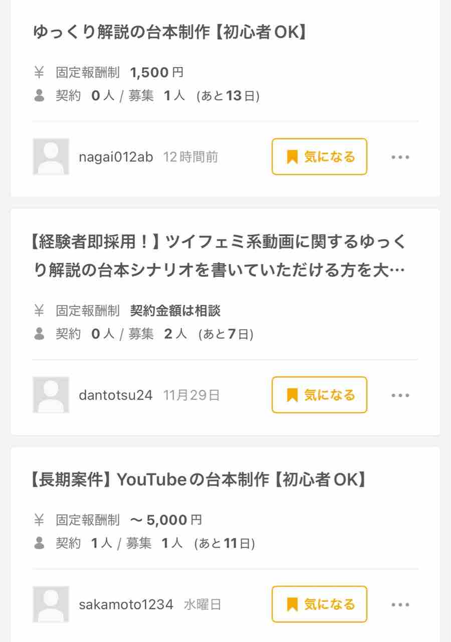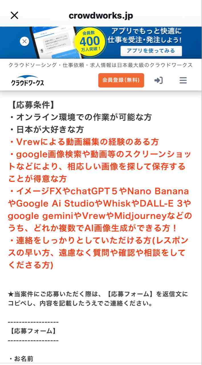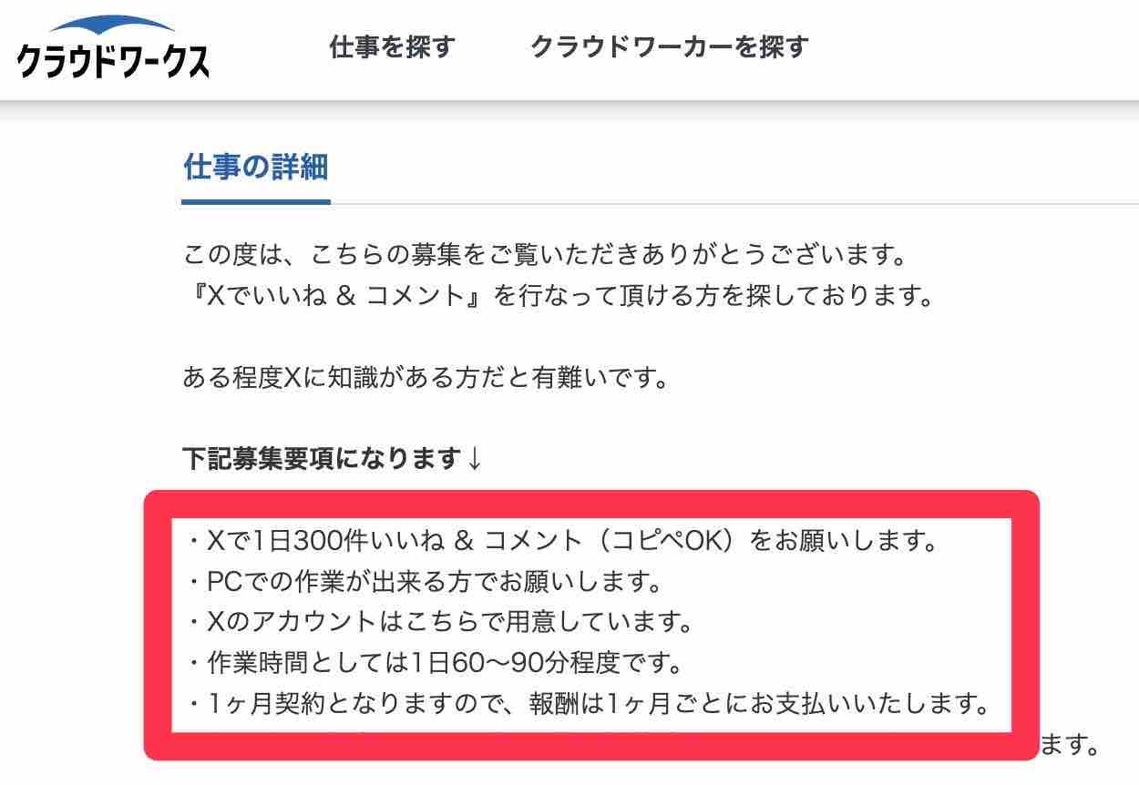 ⬇︎クラウドワークスの求人票の一部。