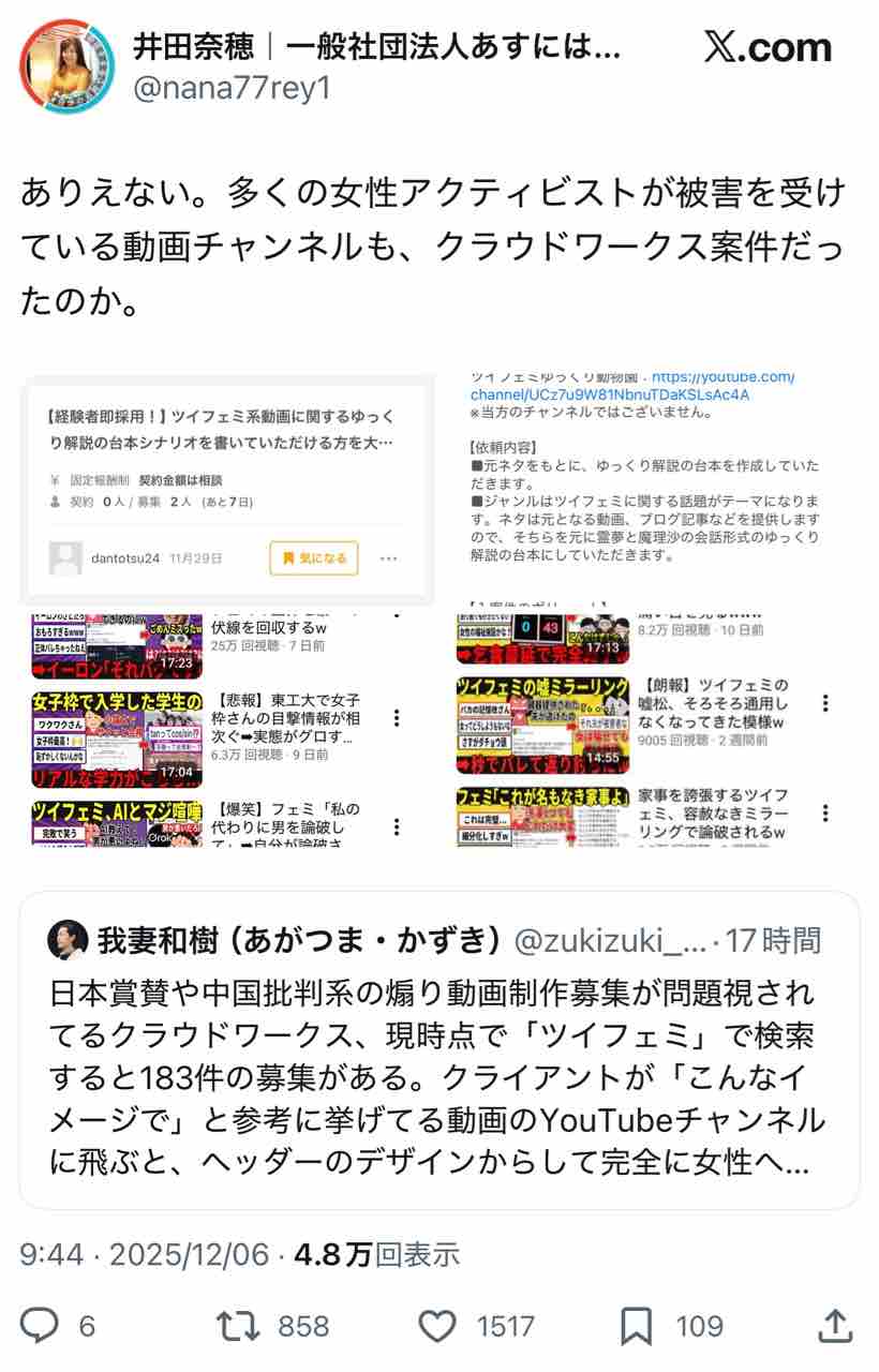 更に「高市政権を批判する者は中国のスパイ」とか言ってたが、実際にはこのクラウドワークスこそ「統一教会や日本会議のスパイ」ではないのか❓