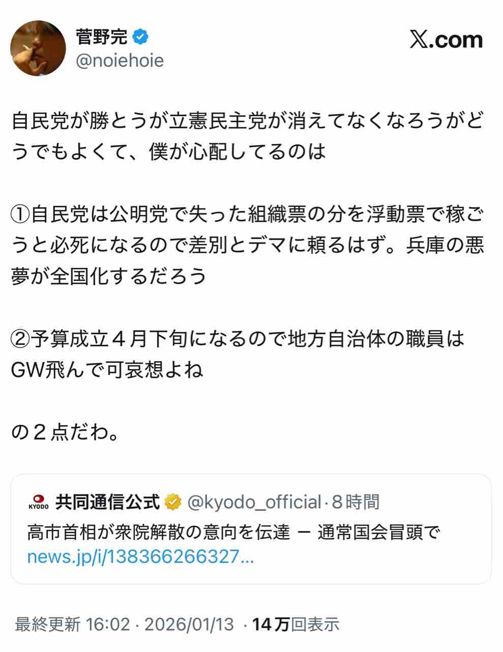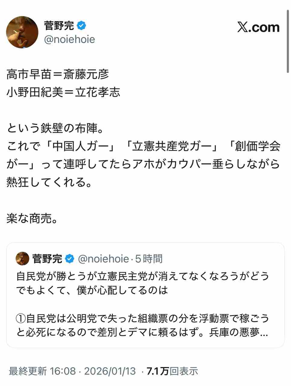 もし自民党がこのヘイト作戦を行った場合、たったの4ヶ月で完全崩壊することになる。恐るべしサナエ、バカさは只者ではない😂
